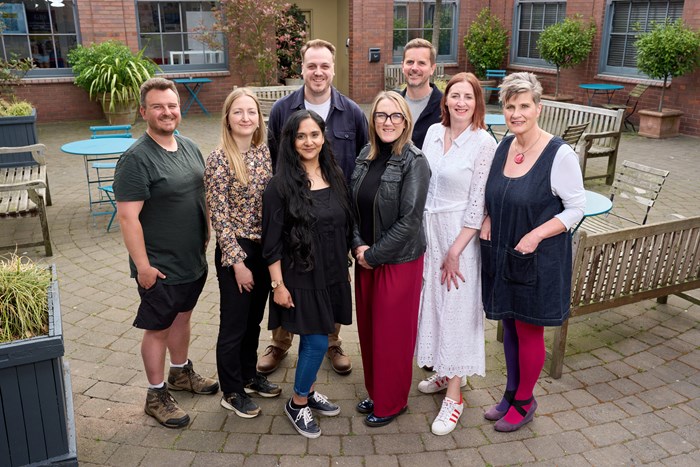 Jonny Graney, founder of Artefact Stirchley; Natalie White, portfolio manager of Power to Change; Mareen Akhter and Stephen Hawkes, from The Developer Society; Hayley Pepler, head of culture, creative industries and digital at the West Midlands Combined Authority; James de le Vingne, chief executive of the Employee Ownership Association; Rose Marley, chief executive of Co-operatives UK; Jo Ind, project coordinator for the West Midlands Ownership Hub, which was launched at Fazeley Studios in Birmingham.